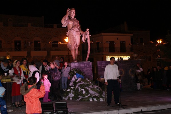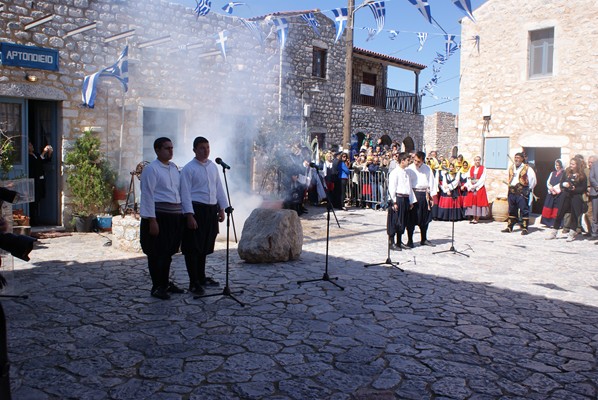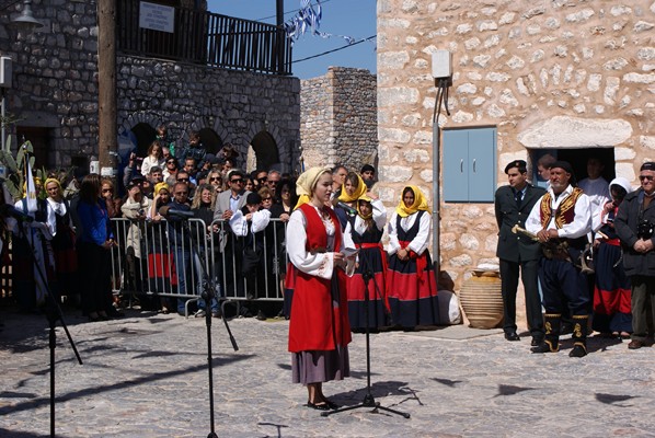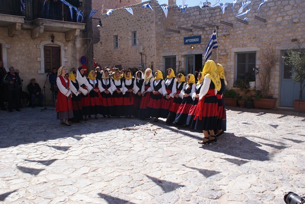 Το απόγευμα του Σαββάτου όπως κάθε χρόνο, εψάλλη επιμνημόσυνη δέηση και έγινε κατάθεση στεφάνων από τα σχολεία της Μάνης, εκπροσώπους φορέων και συλλόγων, ενώ όπως πάντοτε τους παρευρισκόμενους ενθουσίασαν οι μαθητές με τα ποιήματα που απέδωσαν. Τα χορευτικά συγκροτήματα του Πολιτιστικού Συλλόγου Βατίκων, , των Θεματοφυλάκων πολιτιστικής κληρονομιάς του Πύργου Ηλείας, της Ένωσης των Απανταχού Μανιατών, της Πανελλήνιας Ένωσης Γυναικών Μάνης, του πολιτιστικού συλλόγου Ασή- Γωνιάς καθώς επίσης και τα πρωτοεμφανιζόμενα του Δήμου Ανατολικής Μάνης οδήγησαν τον κόσμο με τη λεβεντιά τους και το χορό τους στα μονοπάτια της παραδοσιακής μας μουσικής. Παρούσα και αντιπροσωπεία του Λυκείου Ελληνίδων Σπάρτης.