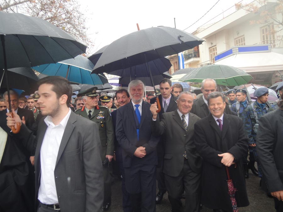 Την κυβέρνηση εκπροσώπησε ο υπουργός Αμυνας Δημήτρης Αβραμόπουλος, ενώ το παρών επίσης έδωσαν ο πρόεδρος του ΛΑΟΣ Γιώργος Καρατζαφέρης, ο περιφερειάρχης Πελοποννήσου Πέτρος Τατούλης, ο γ.γ. του υπουργείου Δικαιοσύνης Νικόλαος Κανελλόπουλος, ο αντιπεριφερειάρχης Μεσσηνίας Παναγιώτης Αλευράς, δήμαρχοιι της Μεσσηνίας, άλλοι πολιτικοί άρχοντες, καθώς και εκπρόσωποι της Αυτοδιοίκησης, των Ενόπλων Δυνάμεων και των Σωμάτων Ασφαλείας.