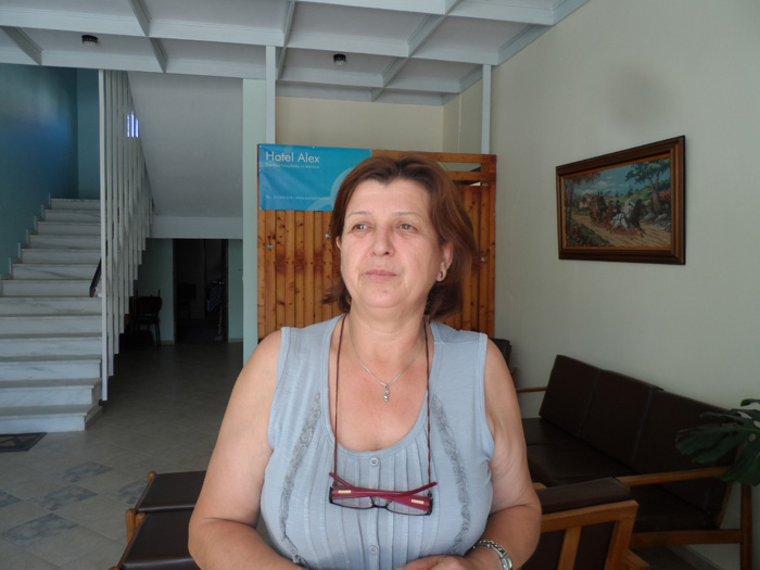 Η Γιώτα Παυλόγιαννη διατηρεί δύο ξενοδοχεία αλλά δε φαίνεται μέχρι στιγμής ικανοποιημένη. Οπως λέει, η κίνηση δεν έχει ξεκινήσει ακόμα φέτος παρότι είναι καλές οι τιμές και η εξυπηρέτηση. "Ελπίζω ο Αύγουστος να πάει καλύτερα. Θα δούμε. Μέχρι τώρα η πελατεία αποτελείται κυρίως από ξένους, ενώ γενικά η κίνηση είναι αρκετά πεσμένη συγκριτικά με πέρυσι". Οπως επισημαίνει "η Μεθώνη αποτελεί προορισμό καθώς έχει πολύ ωραία παραλία, ηρεμία, κάστρο, και πάντα προσφέρεται για οικογενειακές διακοπές, με ωραία ταβερνάκια και ξενοδοχεία, οι ιδιοκτήτες των οποίων κάνουν ό,τι μπορούν για την καλύτερη δυνατή εξυπηρέτηση του κόσμου".