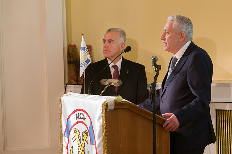Ο Πρόεδρος της ΛΕΣΧΗΣ Λ.Σ. Αντιναύαρχος Λ.Σ. – επίτιμος Α΄. Υπαρχηγός Λ.Σ. κ. Πελοπίδας Αγγελόπουλος, καλωσόρισε όλους τους παρευρισκόμενους, ευχήθηκε ΚΑΛΗ ΧΡΟΝΙΑ και ανάφερε τους λόγους για τους οποίους απονέμονται σήμερα οι τιμητικές διακρίσεις στα τιμώμενα πρόσωπα.